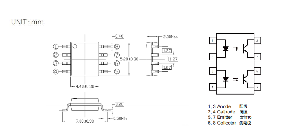 KLD3H7 SSOP8 4.4×5.2×2.0 1.2 80 0.2 5 50-600 5(Typ) 3(Typ) - - -55 +110 3750