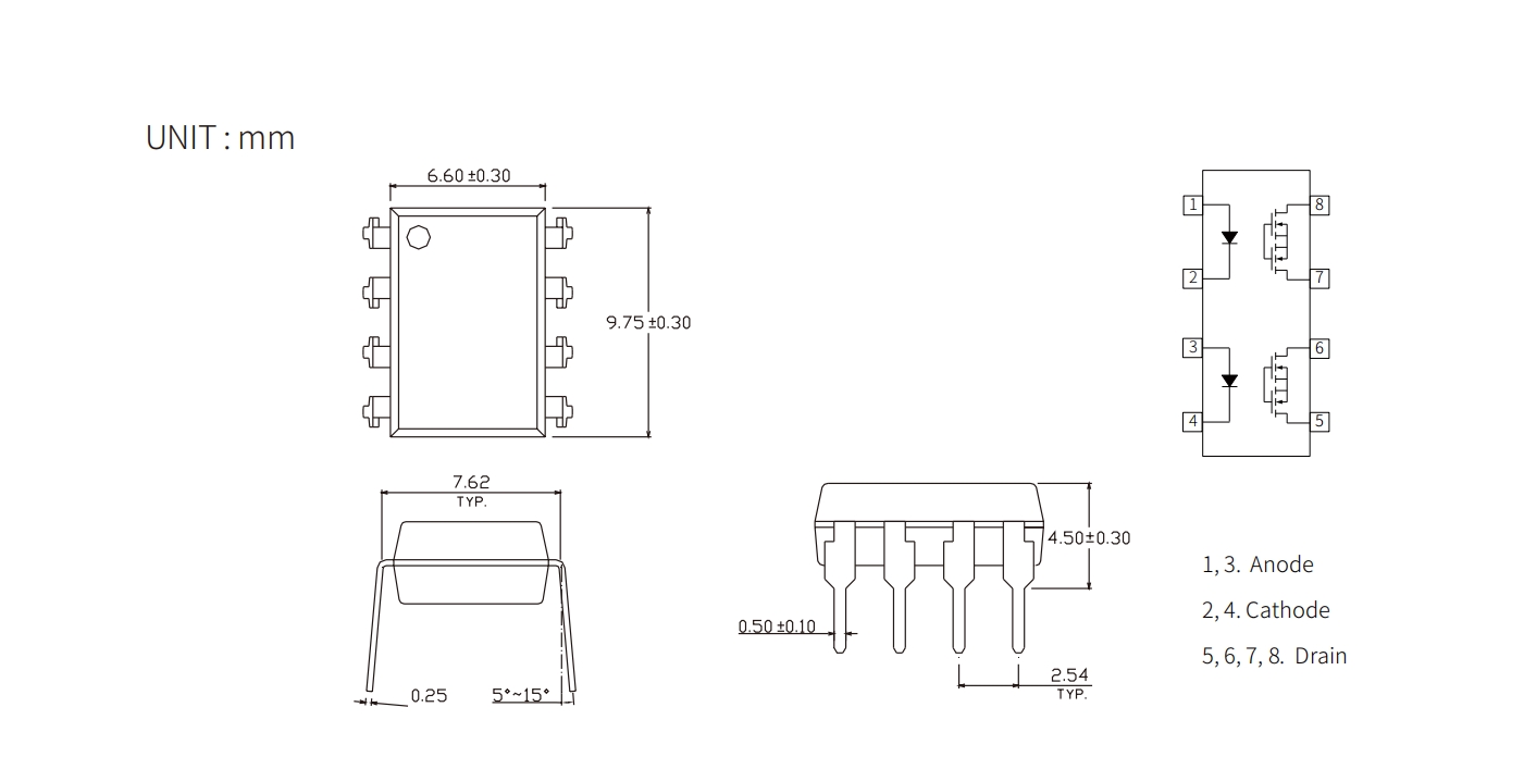 • 固态继电器 VL=600V输出端击穿电压光耦